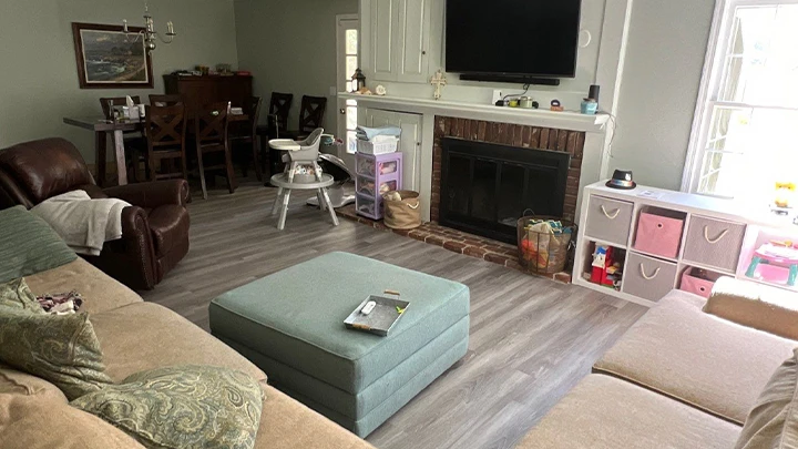 Our team completed exterior repairs to refresh the outside appearance, full interior painting throughout the home, and installed new LVP flooring for a fresh, updated look. We completely renovated the master bathroom, featuring a new vanity, ceramic tile flooring, a frameless glass shower, and modern finishes.